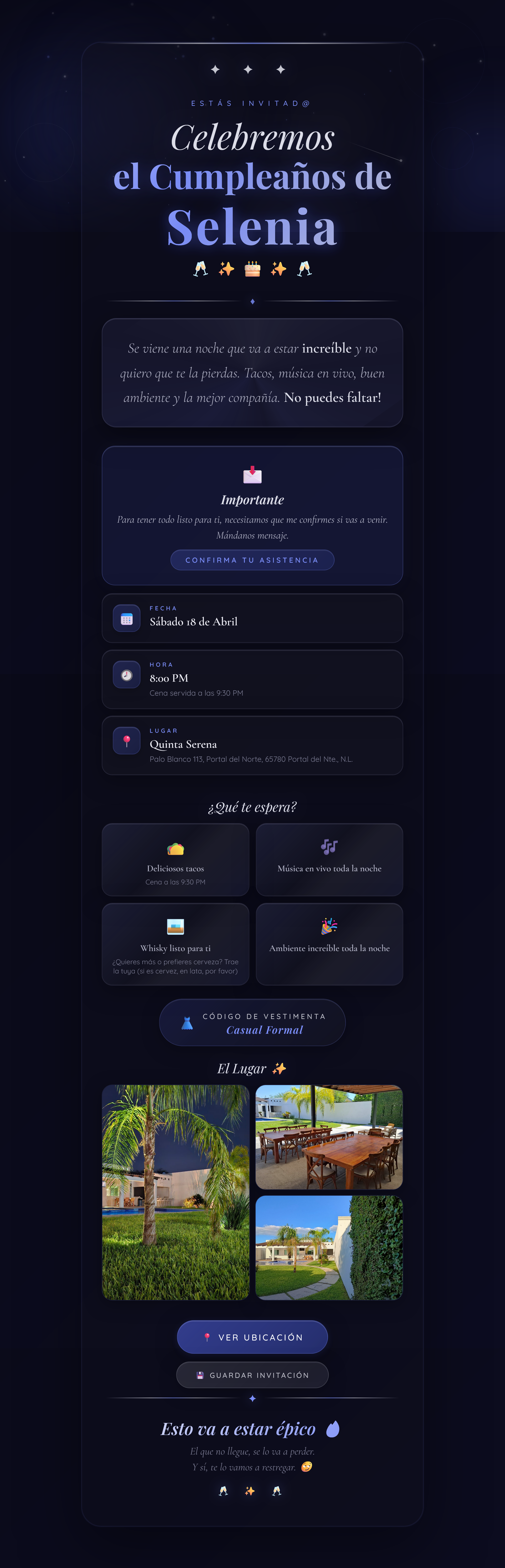 Para tener todo listo para ti, necesitamos que me confirmes si vas a venir. Mándanos mensaje.